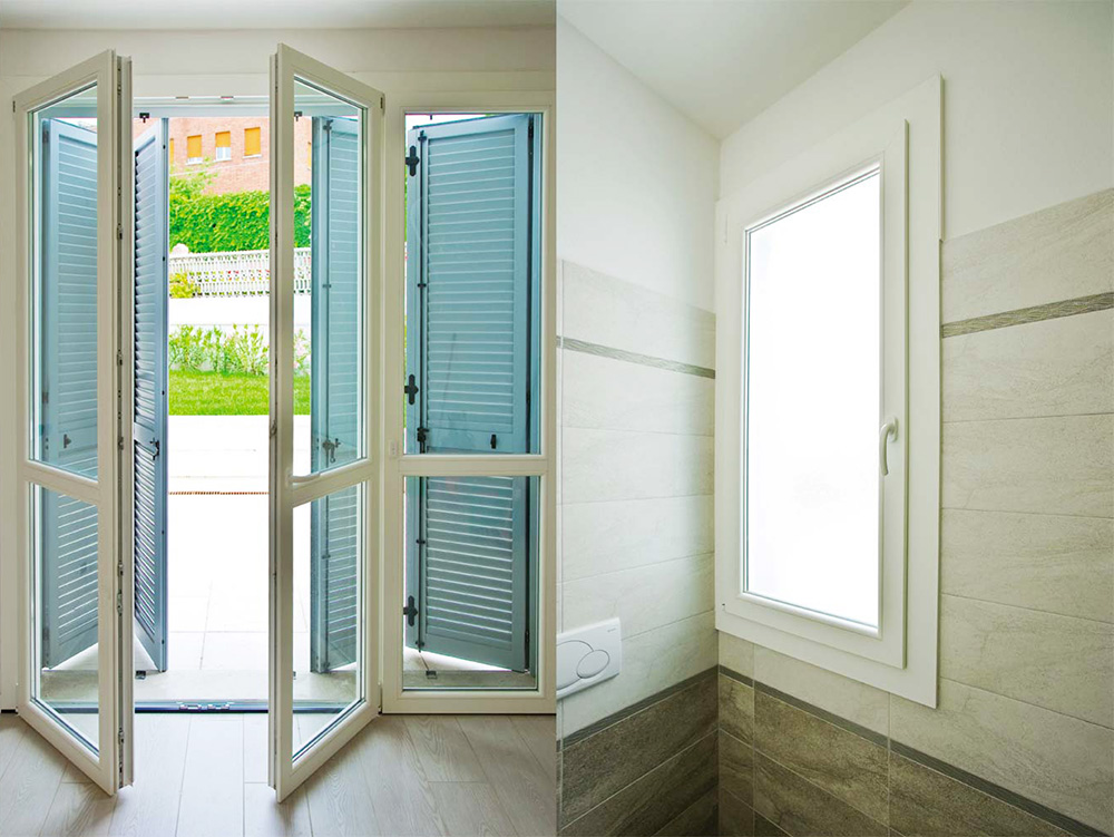 Le nostre finestre in PVC con profilo multicamere sono dedicate a chi cerca elevate proprietà isolanti, resistenza e versatilità con un ottimo rapporto qualità-prezzo. Sono finestre che si adattano ad ogni contesto progettuale: per case nuove, moderne o tradizionali, è da sempre la soluzione ideale per chi volesse sostituire le finestre vecchie, rinnovare e ristrutturare casa senza opere murarie. Grazie al meglio della tecnologia con le finestre in PVC si possono oggi assicurare massimo confort abitativo grazie a strutture più resistenti, performanti di profili che vanno da uno spessore di 70 a 90mm, con doppio vetrocamera o triplovetro per elevato raggiungimento di classe energetiche, fino a 3 guarnizioni per assicurarsi un elevato assorbimento acustico ed una superiore tenuta all’acqua. I rinforzi in metallo possono essere sostituiti con materiale composito più resistente e più leggero, evitando così dispersioni di calore con profili dalle prestazioni isolanti con basso coefficiente di trasmittanza termica; consente inoltre di realizzare portefinestre di grandi dimensioni senza fasce intermedie o sopraluci. Anche l’incollaggio del vetrocamera all’anta dona stabilità e indeformabilità all’infisso, evitando cedimenti dei profili e apportando maggiori benefici in termini di antieffrazione e isolamento termoacustico. Le saldature agli angoli sono precise ed impercettibili grazie ad una tecnologia avanzata che elimina il cordolo di saldatura e conferisce alla finitura del serramento un aspetto ancor più realistico, soprattutto nelle finiture pellicolate effetto legno. Vasta è la gamma dei colori, lisci o venati effetti legno, con la possibilità di Ral esclusivi su richiesta e bicolori che permettono di personalizzare su misura la finestra.